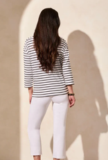 Tribal JetBlk/Wht Horizontal Stripe Square Neck 3/4 Sleeve Top AE